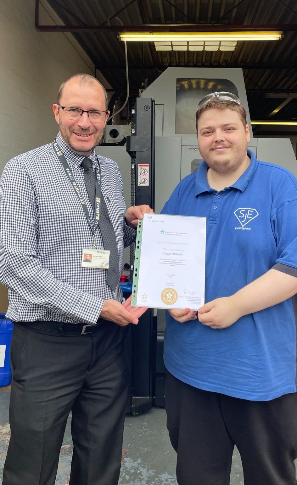 Dagne Edmunds has been able to join his father at the family business after recently completing his engineering apprenticeship with MGTS. Dagne trained for 4 years to become a CAD Engineer, following the Technical Support Pathway of a Level 3 Advanced Manufacturing Engineering apprenticeship and joins SJE Engineering in Coventry producing parts for niche blue chip companies.